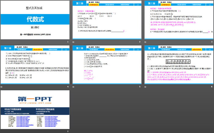 关键词:北师大版七年级上册数学PPT课件免费下载,代数式PPT下载,整式及其加减PPT下载,.PPT格式;
