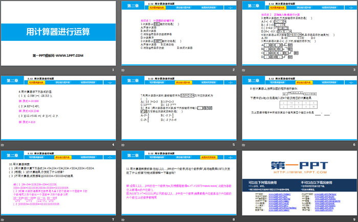 关键词:北师大版七年级上册数学PPT课件免费下载,用计算器进行运算PPT下载,有理数及其运算PPT下载,.PPT格式;