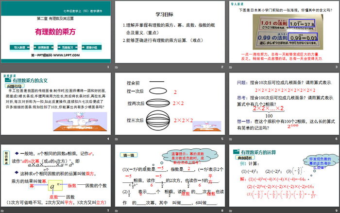 关键词:北师大版七年级上册数学PPT课件免费下载,有理数的乘方PPT下载,有理数及其运算PPT下载,.PPT格式;