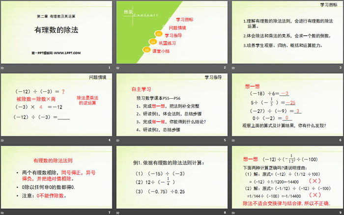 关键词:北师大版七年级上册数学PPT课件免费下载,有理数的除法PPT下载,有理数及其运算PPT下载,.PPT格式;