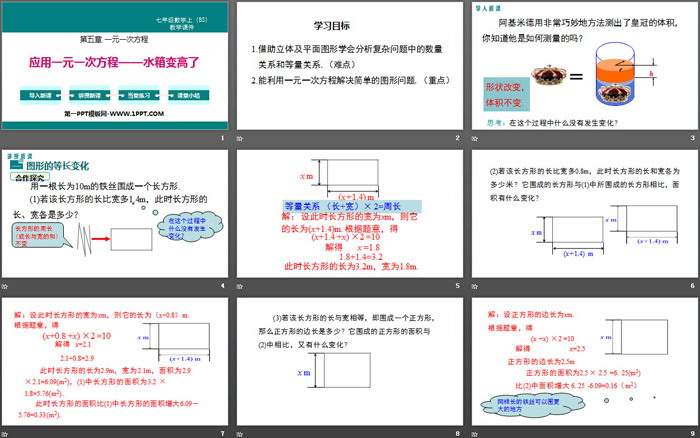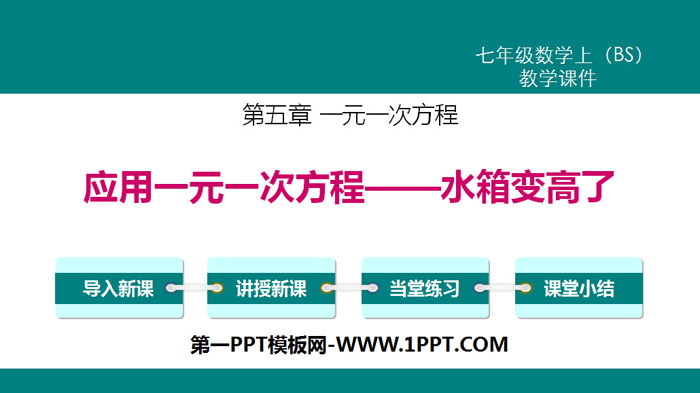 关键词:北师大版七年级上册数学PPT课件免费下载,应用一元一次方程水箱变高了PPT下载,一元一次方程PPT下载,.PPT格式;