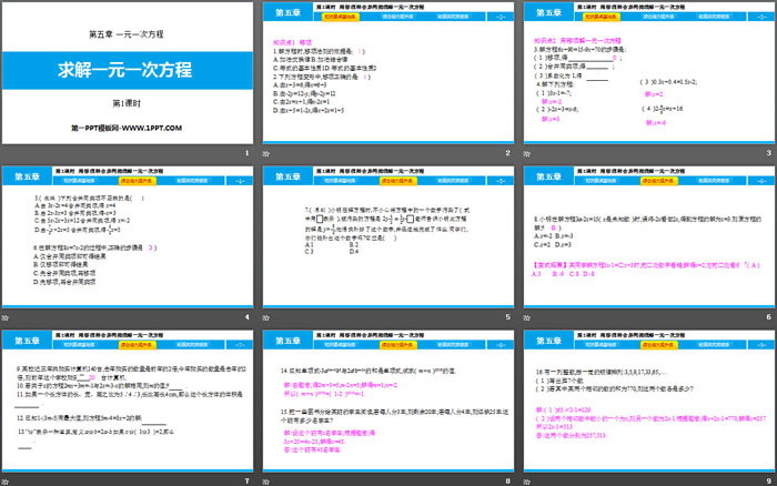 关键词:北师大版七年级上册数学PPT课件免费下载,求解一元一次方程PPT下载,一元一次方程PPT下载,.PPT格式;