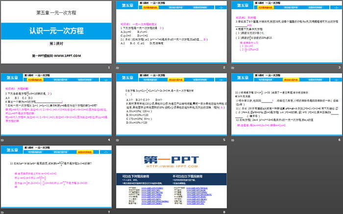 关键词:北师大版七年级上册数学PPT课件免费下载,认识一元一次方程PPT下载,一元一次方程PPT下载,.PPT格式;