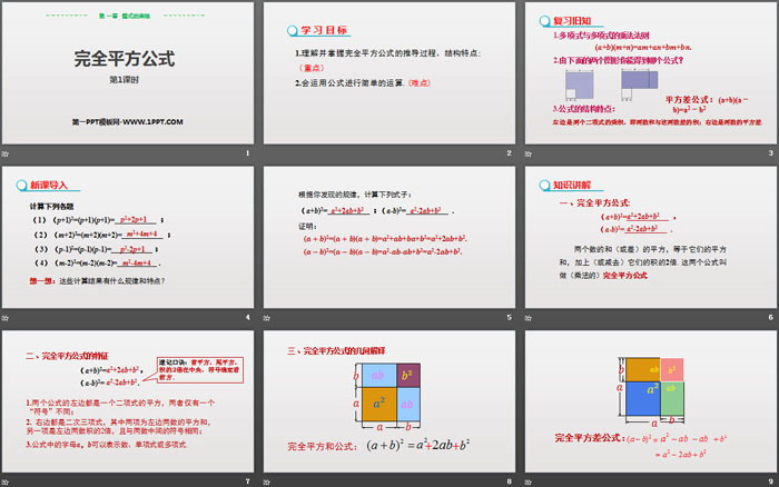 关键词:北师大版七年级下册数学PPT课件免费下载,完全平方公式PPT下载,整式的乘除PPT下载,.PPT格式;