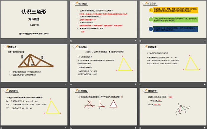 关键词:北师大版七年级下册数学PPT课件免费下载,认识三角形PPT下载,三角形PPT下载,.PPT格式;