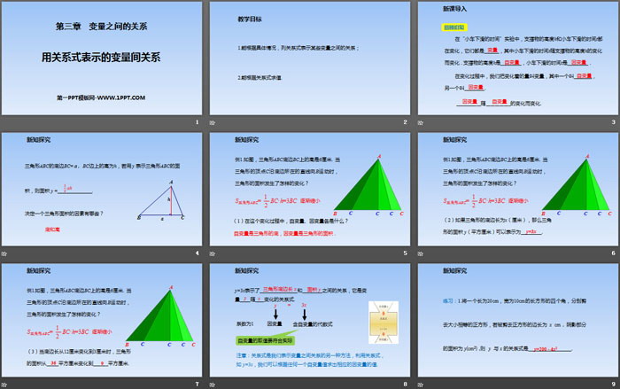 关键词:北师大版七年级下册数学PPT课件免费下载,用关系式表示的变量关系PPT下载,变量之间的关系PPT下载,.PPT格式;