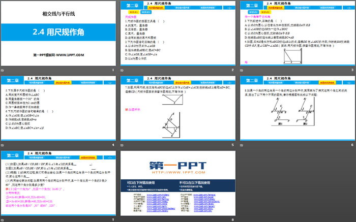关键词:北师大版七年级下册数学PPT课件免费下载,用尺规作角PPT下载,相交线与平行线PPT下载,.PPT格式;