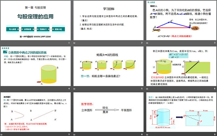 1.学会运用勾股定理求立体图形中两点之间的最短距离.(重点)