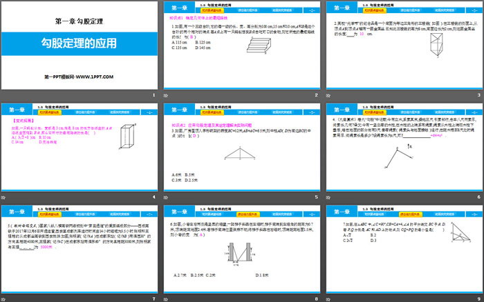 关键词:北师大版八年级上册数学PPT课件免费下载,勾股定理的应用PPT下载,勾股定理PPT下载,.PPT格式;