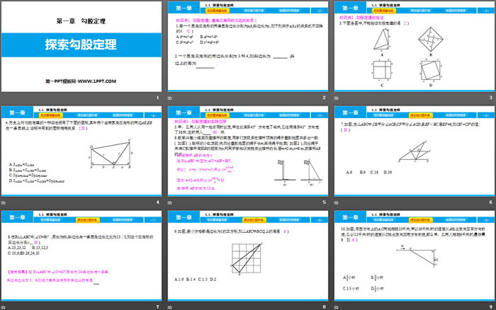 关键词:北师大版八年级上册数学PPT课件免费下载,探索勾股定理PPT下载,勾股定理PPT下载,.PPT格式;