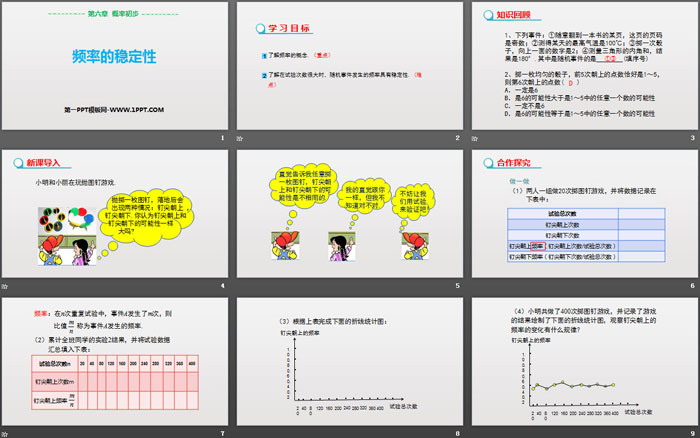 关键词:北师大版七年级下册数学PPT课件免费下载,频率的稳定性PPT下载,概率初步PPT下载,.PPT格式;