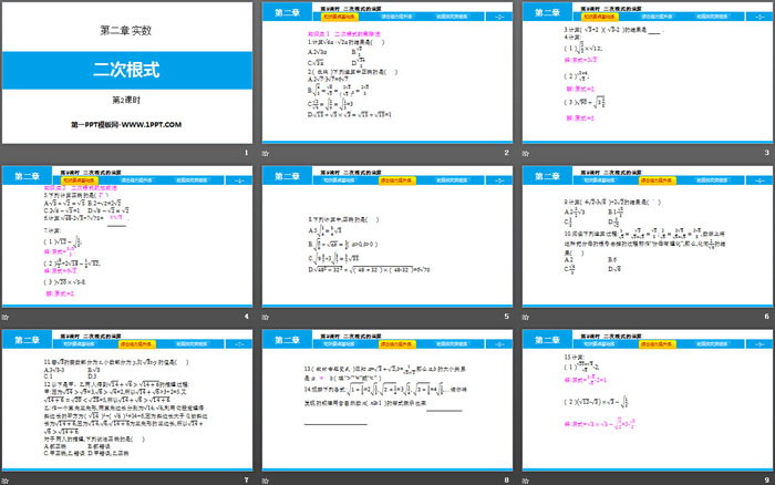 关键词:北师大版八年级上册数学PPT课件免费下载,二次根式PPT下载,实数PPT下载,.PPT格式;