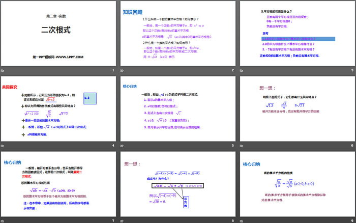 关键词:北师大版八年级上册数学PPT课件免费下载,二次根式PPT下载,实数PPT下载,.PPT格式;