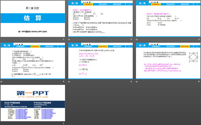 关键词:北师大版八年级上册数学PPT课件免费下载,估算PPT下载,实数PPT下载,.PPT格式;
