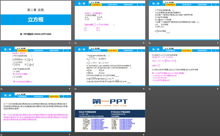 关键词:北师大版八年级上册数学PPT课件免费下载,立方根PPT下载,实数PPT下载,.PPT格式;