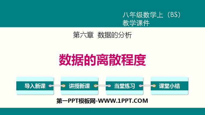关键词:北师大版八年级上册数学PPT课件免费下载,数据的离散程度PPT下载,数据的分析PPT下载,.PPT格式;