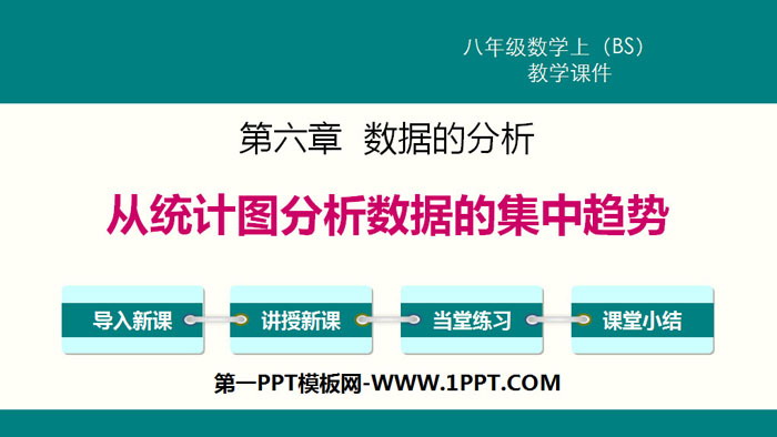 关键词:北师大版八年级上册数学PPT课件免费下载,从统计图分析数据的集中趋势PPT下载,数据的分析PPT下载,.PPT格式;
