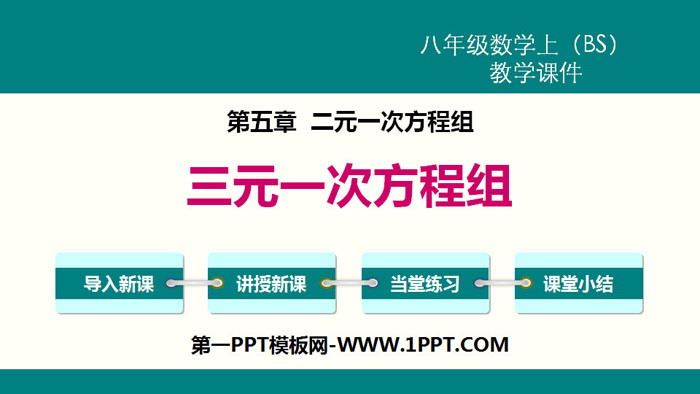 关键词:北师大版八年级上册数学PPT课件免费下载,三元一次方程组PPT下载,二元一次方程组PPT下载,.PPT格式;