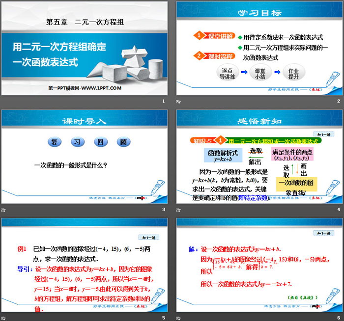 关键词:北师大版八年级上册数学PPT课件免费下载,用二元一次方程组确定一次函数表达式PPT下载,二元一次方程组PPT下载,.PPT格式;