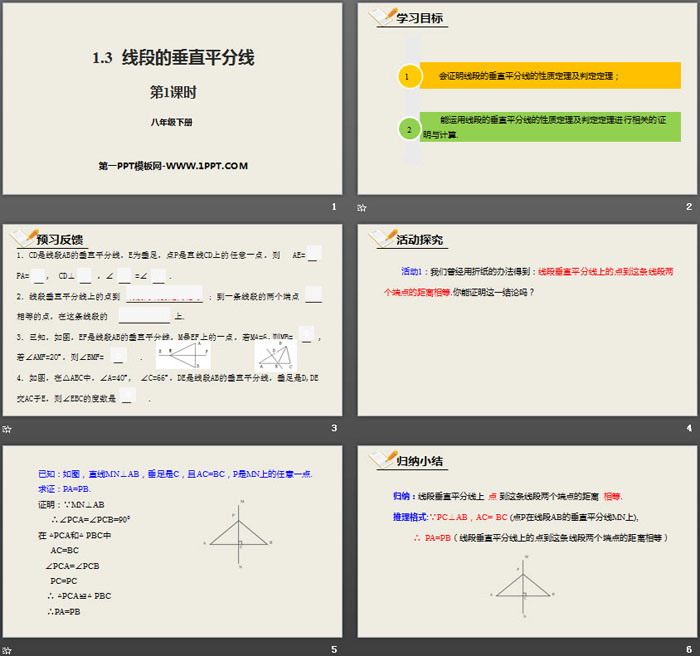 关键词:北师大版八年级下册数学PPT课件免费下载,线段的垂直平分线PPT下载,三角形的证明PPT下载,.PPT格式;
