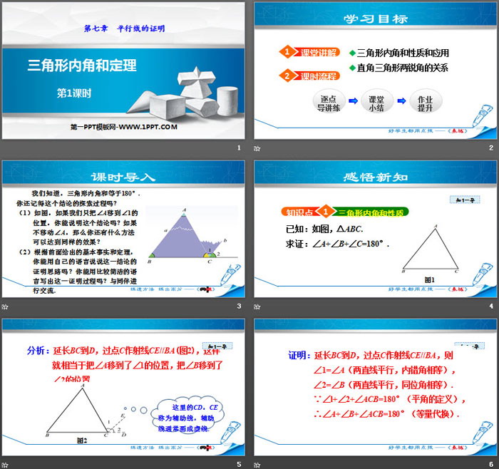 三角形内角和定理PPT,第三部分内容:课堂小结