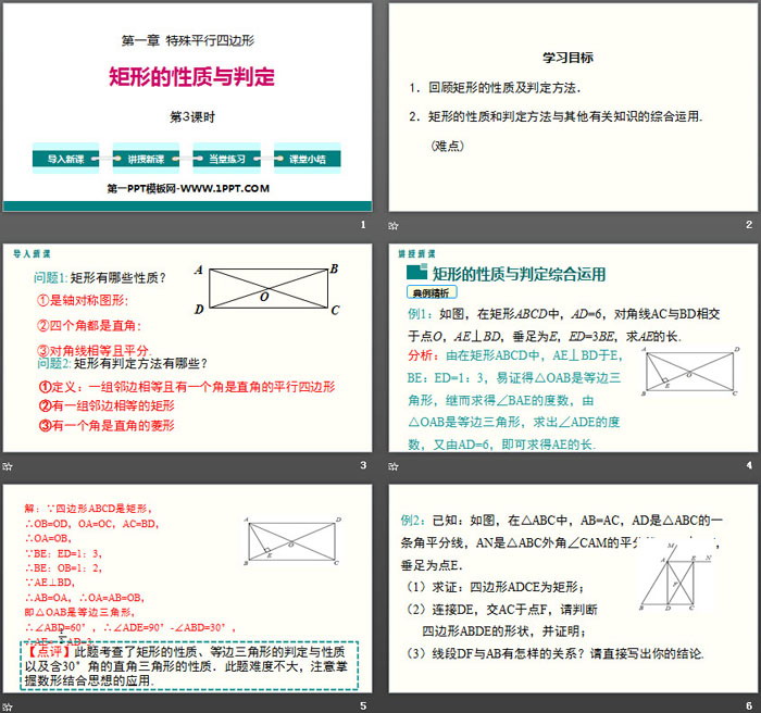 2.矩形的性质和判定方法与其他有关知识的综合运用.(难点)