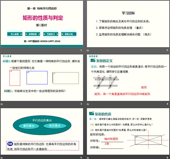 1.了解矩形的概念及其与平行四边形的关系;