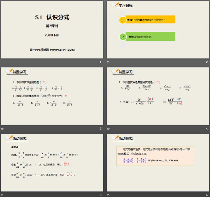 关键词:北师大版八年级下册数学PPT课件免费下载,认识分式PPT下载,分式与分式方程PPT下载,.PPT格式;