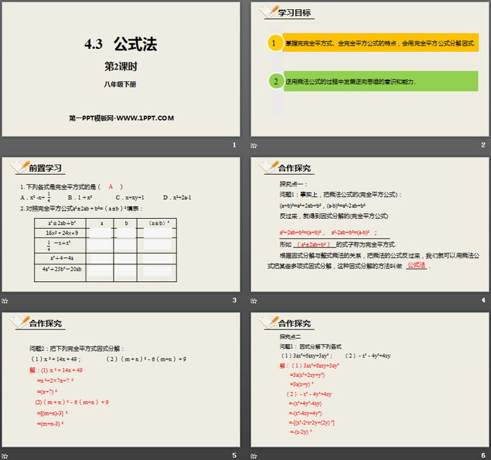 关键词:北师大版八年级下册数学PPT课件免费下载,公式法PPT下载,因式分解PPT下载,.PPT格式;