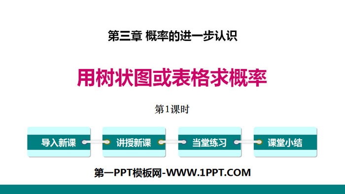关键词:北师大版九年级上册数学PPT课件免费下载,用树状图或表格求概率PPT下载,概率的进一步认识PPT下载,.PPT格式;