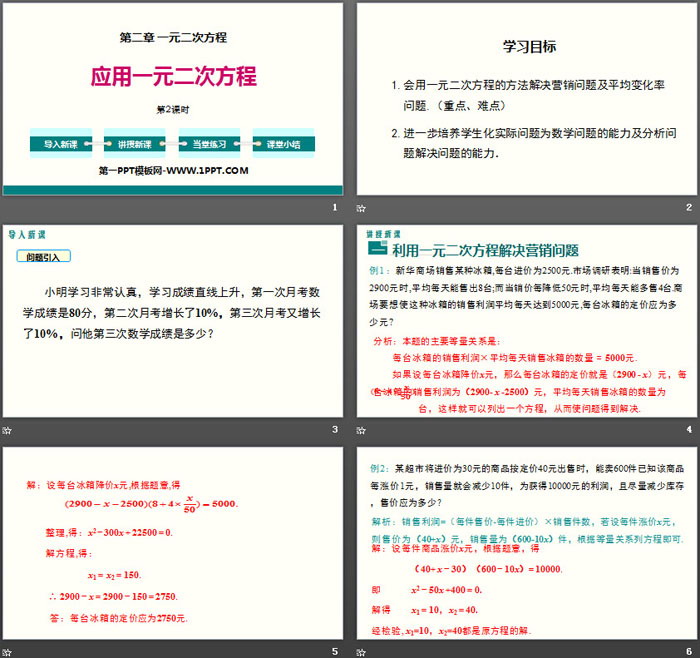 1.会用一元二次方程的方法解决营销问题及平均变化率问题.(重点、难点)