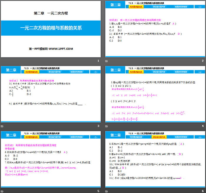 关键词:北师大版九年级上册数学PPT课件免费下载,一元二次方程的根与系数的关系PPT下载,一元二次方程PPT下载,.PPT格式;