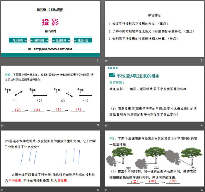 关键词:北师大版九年级上册数学PPT课件免费下载,投影PPT下载,投影与视图PPT下载,.PPT格式;