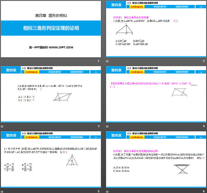 关键词:北师大版九年级上册数学PPT课件免费下载,相似三角形判定定理的证明PPT下载,图形的相似PPT下载,.PPT格式;