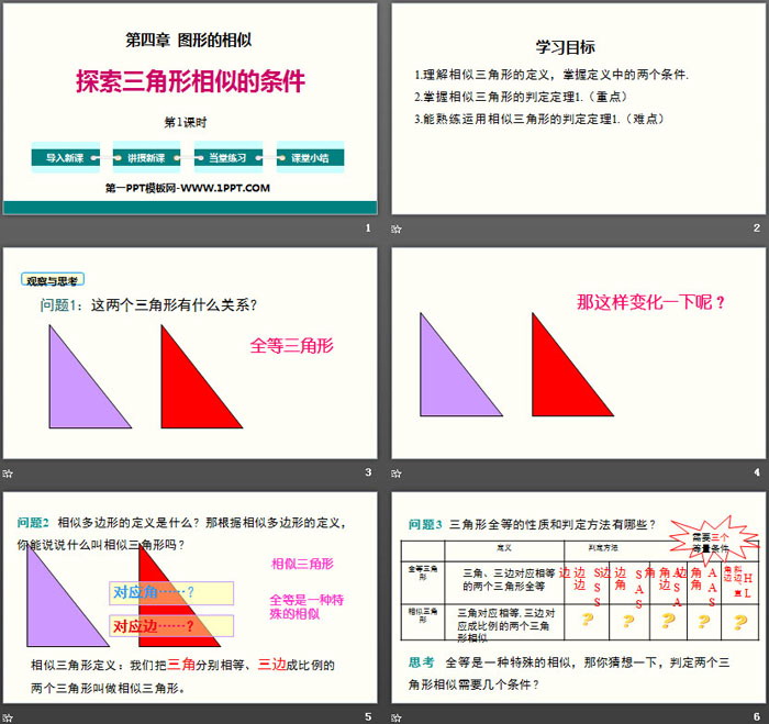 关键词:北师大版九年级上册数学PPT课件免费下载,探索三角形相似的条件PPT下载,图形的相似PPT下载,.PPT格式;