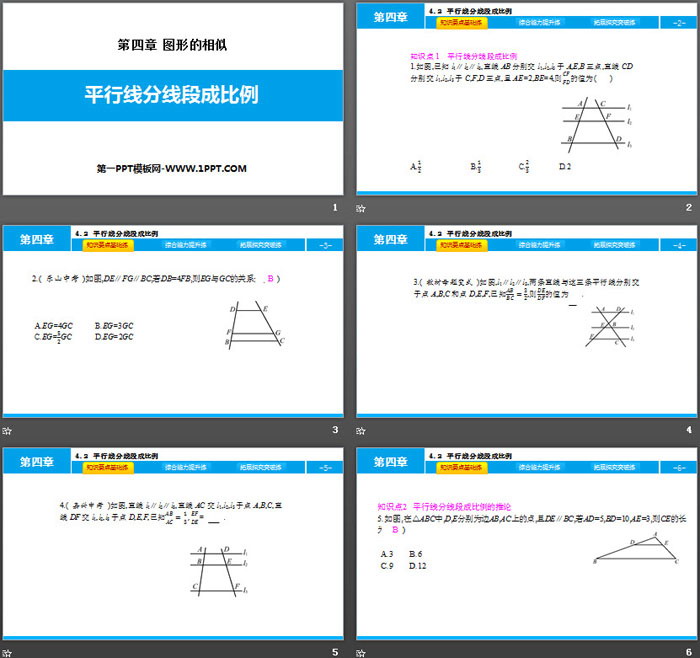 关键词:北师大版九年级上册数学PPT课件免费下载,平行线分线段成比例PPT下载,图形的相似PPT下载,.PPT格式;