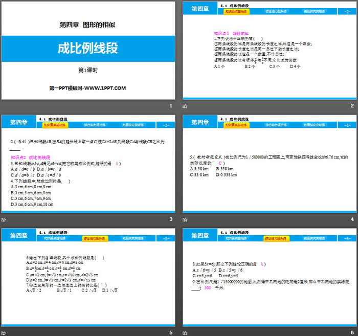 关键词:北师大版九年级上册数学PPT课件免费下载,成比例线段PPT下载,图形的相似PPT下载,.PPT格式;
