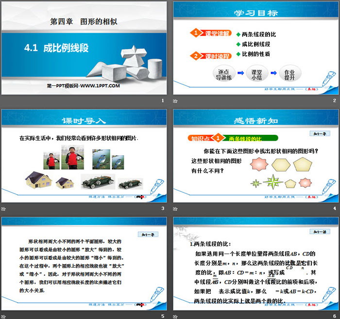 关键词:北师大版九年级上册数学PPT课件免费下载,成比例线段PPT下载,图形的相似PPT下载,.PPT格式;