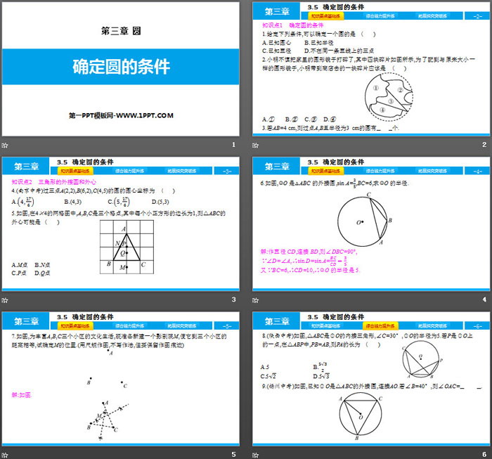 关键词:北师大版九年级下册数学PPT课件免费下载,确定圆的条件PPT下载,圆PPT下载,.PPT格式;