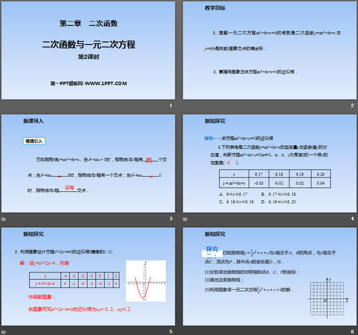 关键词:北师大版九年级下册数学PPT课件免费下载,二次函数与一元二次方程PPT下载,二次函数PPT下载,.PPT格式;