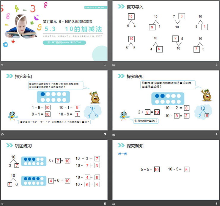 关键词:10的加减法PPT课件免费下载,10的加减法PPT下载,.PPT格式;