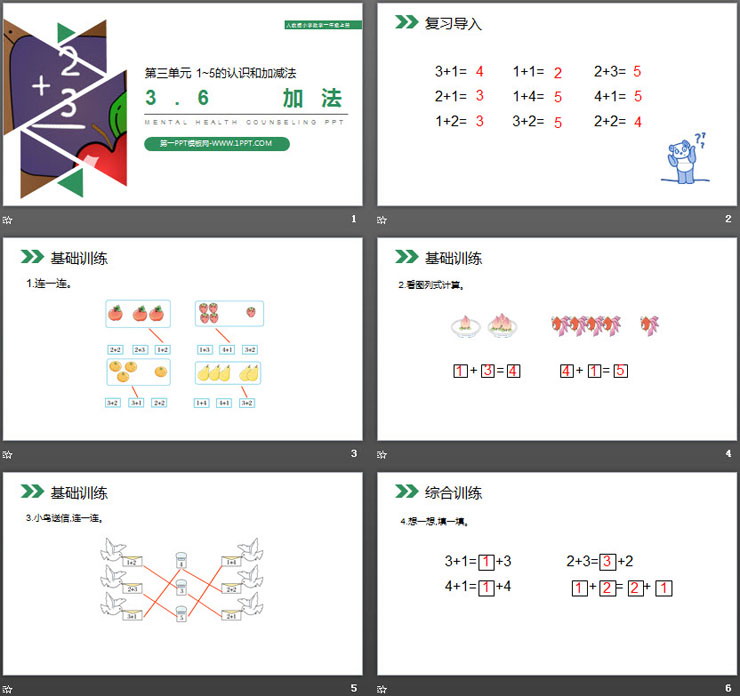 关键词:加法PPT课件免费下载,1-5的认识和加减法PPT下载,.PPT格式;