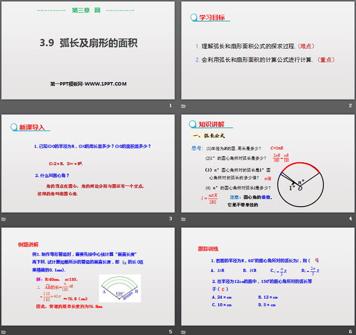 《弧长及扇形的面积》圆PPT下载,共17页。