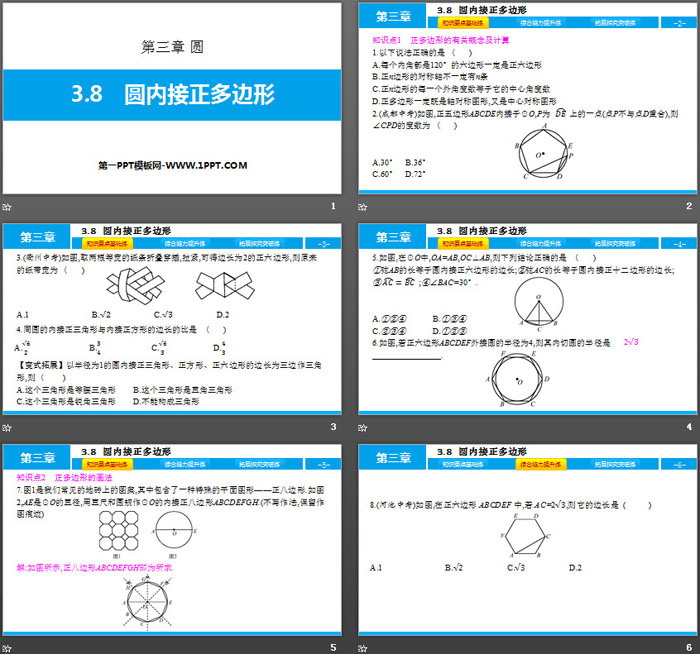关键词:北师大版九年级下册数学PPT课件免费下载,圆内接正多边形PPT下载,圆PPT下载,.PPT格式;