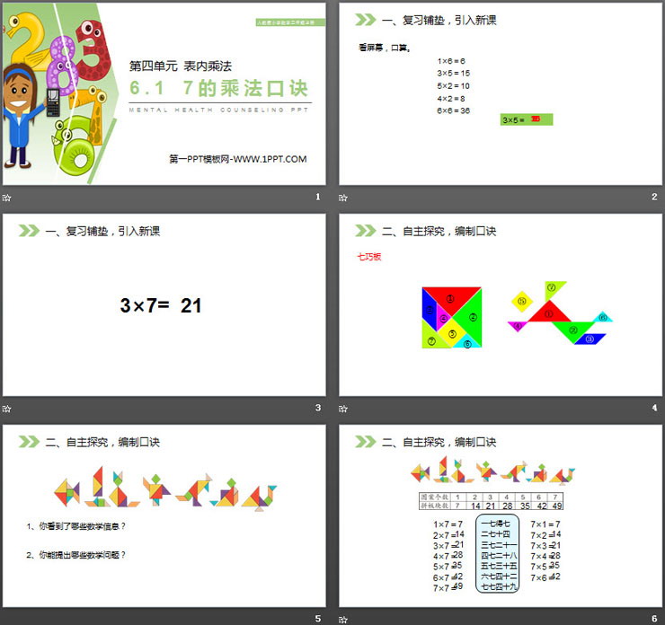 关键词:7的乘法口诀PPT课件免费下载,表内乘法PPT下载,.PPT格式;