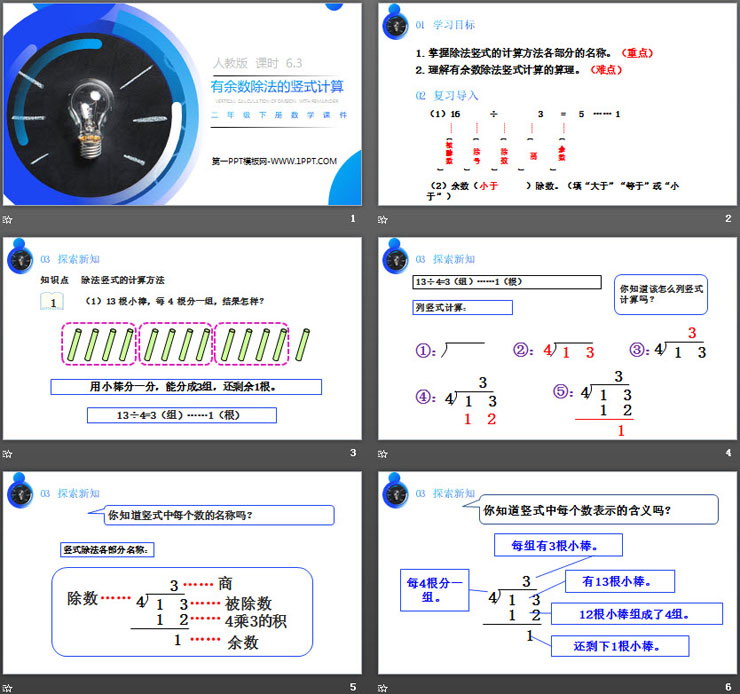 关键词:有余数除法的竖式计算PPT课件免费下载,有余数的除法PPT下载,.PPT格式;