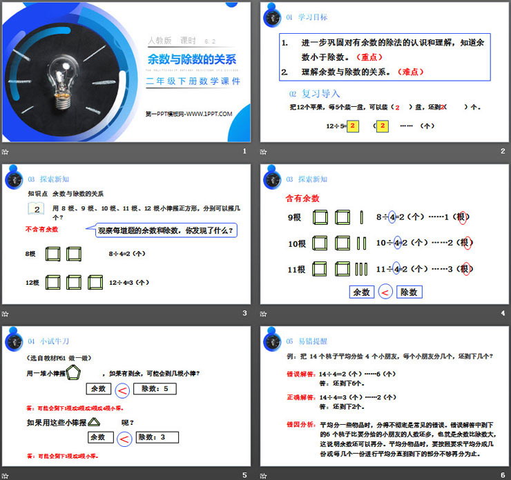关键词:余数与除数的关系PPT课件免费下载,有余数的除法PPT下载,.PPT格式;