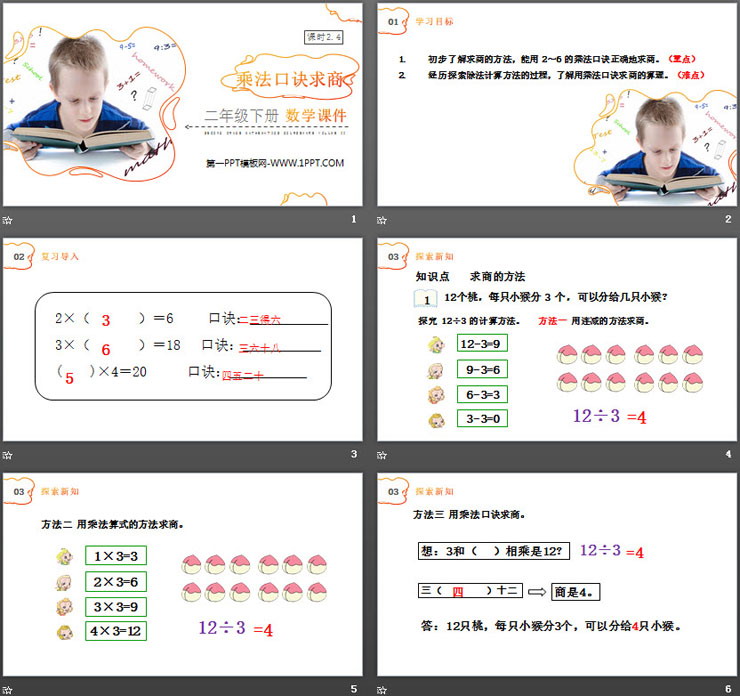 关键词:乘法口诀求商PPT课件免费下载,表内除法PPT下载,.PPT格式;