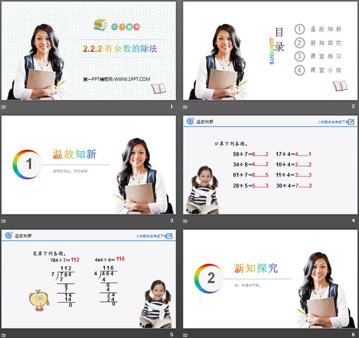 关键词:有余数的除法PPT课件免费下载,除数是一位数的除法PPT下载,.PPT格式;