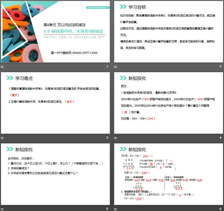 关键词:被减数中间末尾有0的减法PPT课件免费下载,万以内加法和减法PPT下载,.PPT格式;
